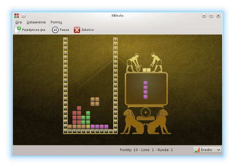 KBlocks udostępnia 3 poziomy trudności i dwie skórki.