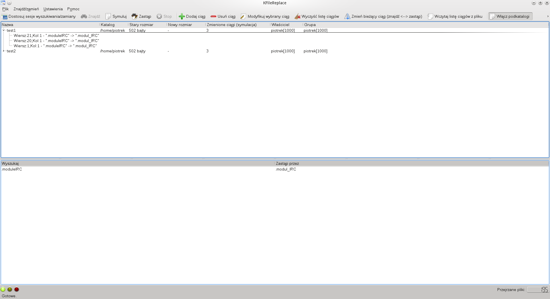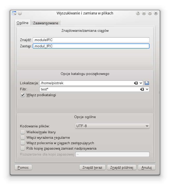 KFileReplace – narzędzie służące do masowej zamiany tekstu w dużej liczbie plików tekstowych. Jest częścią środowiska KDE. Umożliwia dokładne ustawienie, poprzez filtr nazw, które pliki tekstowe w danym katalogu mają być zmodyfikowane, a które nie. Obsługuje wyrażenia regularne, wiele rodzajów kodowania (w tym najpopularniejsze, UTF-8) oraz tworzenie kopii zapasowej.